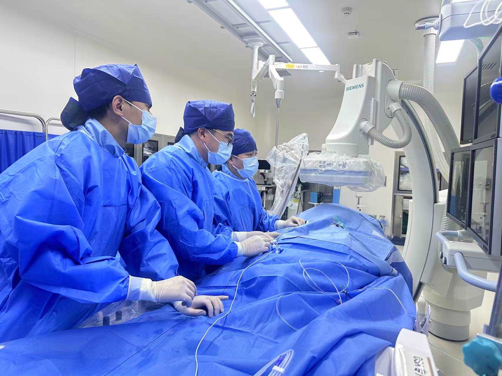 中山大學(xué)附屬第一醫(yī)院血管外科常光其教授、李梓倫教授團(tuán)隊(duì)順利開展中國大陸首例EKOS超聲波輔助溶栓系統(tǒng)治療肺動脈栓塞。新華網(wǎng)發(fā)(受訪者供圖)