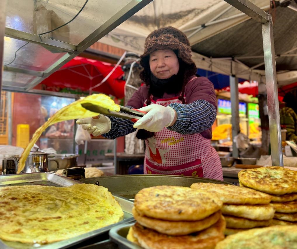 下南關(guān)街商戶馬有萍在制作面點。新華社記者張子琪 攝