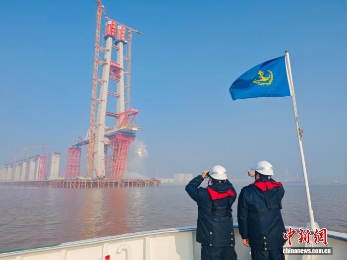 杭州灣作為世界三大強(qiáng)潮海灣之一,以強(qiáng)潮急流、快速?zèng)_淤和復(fù)雜通航環(huán)境著稱,給橋梁建設(shè)帶來嚴(yán)峻考驗(yàn)。面對挑戰(zhàn),嘉興海事部門成立現(xiàn)場工作組,開通行政審批綠色通道,推行“一站式”服務(wù)保障,并充分發(fā)揮“VTS+CCTV+海巡艇+無人機(jī)”綜合立體護(hù)航體系的作用,持續(xù)保障大橋建設(shè)安全高效推進(jìn)。