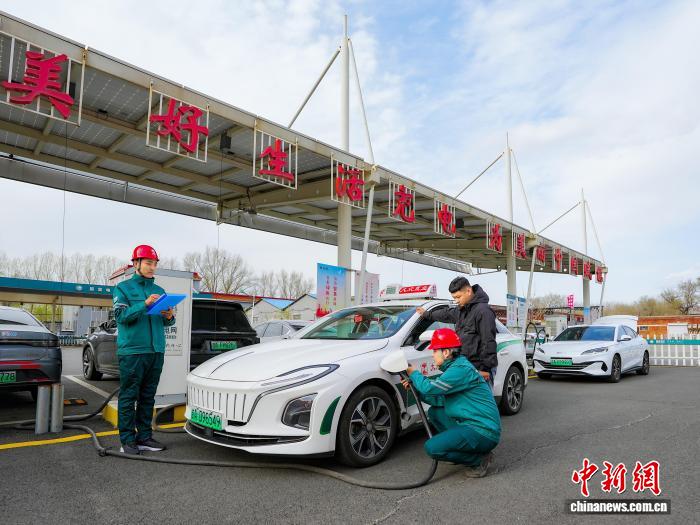 一新能源汽車在長春市蔚山路充換電站充電。(資料圖)(國網(wǎng)吉林省電力有限公司供圖)