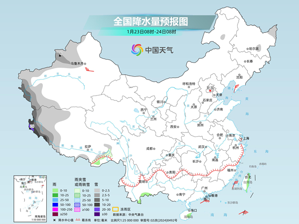 中央氣象臺預(yù)計(jì),今天,新疆南疆西部山區(qū)、西藏西部等地部分地區(qū)有小到中雪,其中,新疆南疆西部山區(qū)部分地區(qū)有大到暴雪。湖南南部、廣西西北部等地局地有凍雨。云南東南部、廣西中東部、福建中部、臺灣島中東部等地部分地區(qū)有小雨,其中,臺灣島東部局地有中雨。
