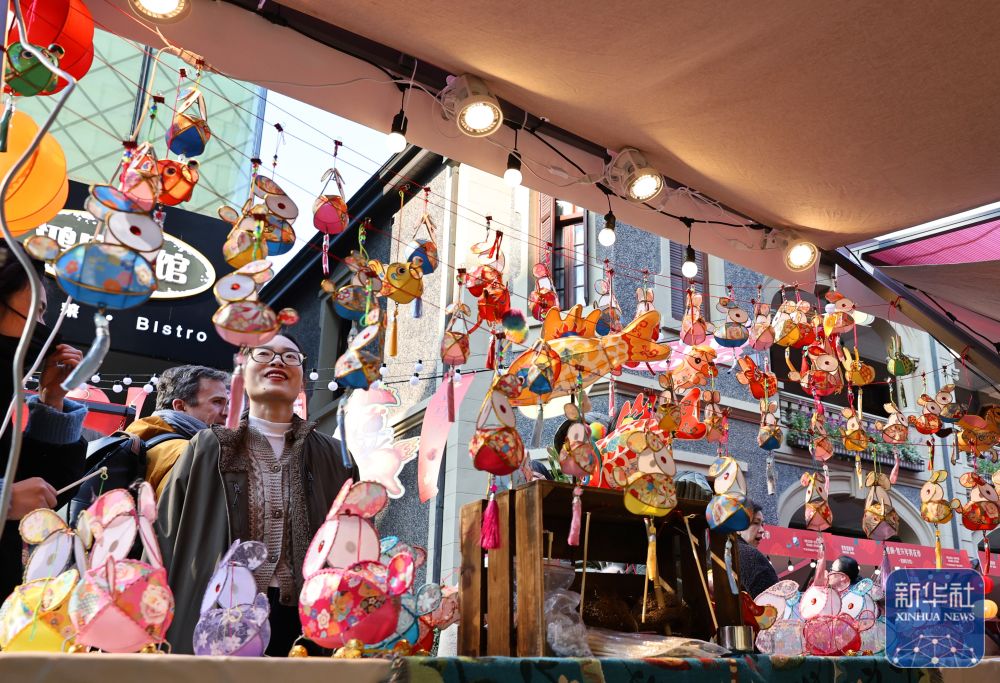 ↑1月23日,上海思南年宵花市上的傳統(tǒng)彩燈手工藝品吸引游客駐足觀看。新華社記者 方喆 攝