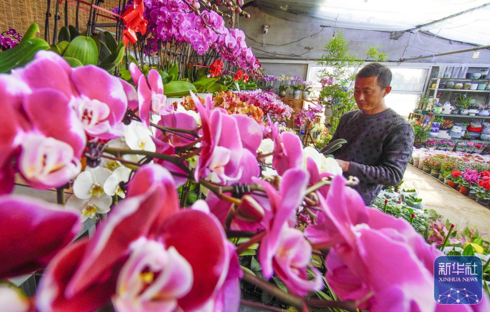 ↑1月22日,河北省遵化市遵化鎮(zhèn)張家坎村農(nóng)民在暖棚管護花卉,準(zhǔn)備供應(yīng)節(jié)日市場。新華社發(fā)(劉滿倉攝)