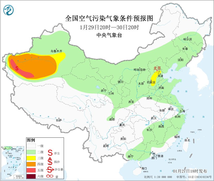 27日夜間至28日,區(qū)域大部大氣擴散條件一般,山西中南部、陜西關中等地的部分地區(qū)有輕至中度霾。29日起,受冷空氣和降水共同影響,霾天氣逐漸減弱消散。
