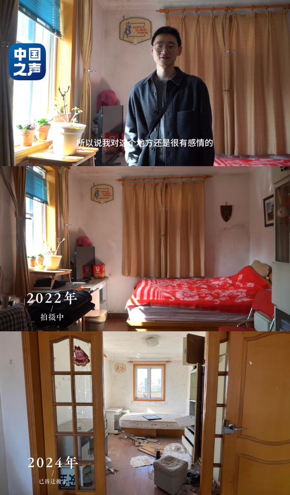 墻上留存的童年涂鴉,門框上標(biāo)注的身高劃痕,吱呀作響的地板,還有廚房里那扇擦不亮的舊窗戶,連同整個(gè)家的溫度,都被陳真小心翼翼地放在一張相紙里。在共用廚房里,陳真給宗壘一家人拍了最有煙火氣的合照,心里想好了與合照相配的文案:趁晾衣繩還掛著今天的太陽,趁鍋鏟聲還在巷子里翻炒著黃昏,我把最后的熱鬧,裝進(jìn)鏡頭里。