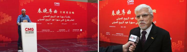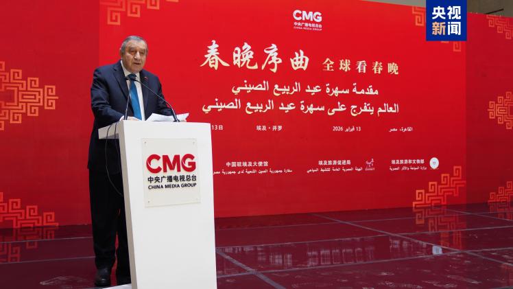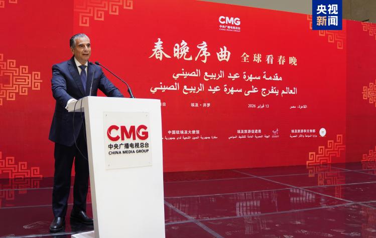 當(dāng)?shù)貢r(shí)間2月13日,“春晚序曲 全球看春晚”埃及專場活動(dòng)在開羅舉行。本次活動(dòng)由中國中央廣播電視總臺與中國駐埃及大使館、埃及旅游和文物部、埃及旅游促進(jìn)局共同主辦。中宣部副部長、中央廣播電視總臺臺長慎海雄作視頻致辭。中國駐埃及大使兼駐阿盟全權(quán)代表廖力強(qiáng),埃及政府代表、埃及外交部亞洲事務(wù)部助哈姆扎,埃及前總理沙拉夫出席活動(dòng)并致辭。埃及考古學(xué)家、前文物部長哈瓦斯,埃及旅游促進(jìn)局主席代拉提芙,埃及外交事務(wù)委員會執(zhí)行主任伊扎特,巴德爾大學(xué)副校長巴斯歐尼,阿盟非洲事務(wù)司司長布斯坦吉,阿盟理事會秘書處主任法赫米等中埃兩國政界、學(xué)術(shù)界、媒體界代表200余名嘉賓參加活動(dòng)。