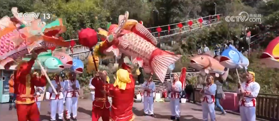 記者身后的九鯉湖景區(qū),湖光山色、層巒疊翠,展現(xiàn)出南方山岳特有的靈秀。景區(qū)里最熱門的打卡點(diǎn)之一,叫做“一線天”。這里最窄處不到30厘米,一次只能容一人貼壁通過,游客需要側(cè)身慢慢穿行,在狹窄石縫間體驗(yàn)攀登的樂趣。記者身旁正在巡游的就是當(dāng)?shù)氐姆沁z——店下魚燈。大家看,一盞盞彩繪魚燈隨著隊(duì)伍前進(jìn)上下擺動,像魚兒在水里游,特別靈動。在過去,漁民會用魚燈祈愿出海平安、豐衣足食。過年的時候看魚燈,也寓意“年年有余、風(fēng)調(diào)雨順”。