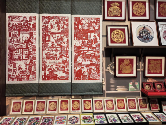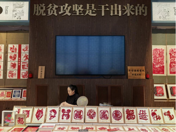 這是中國工藝美術(shù)館里的豐寧滿族剪紙非遺工坊。新華網(wǎng)記者 唐斕 攝