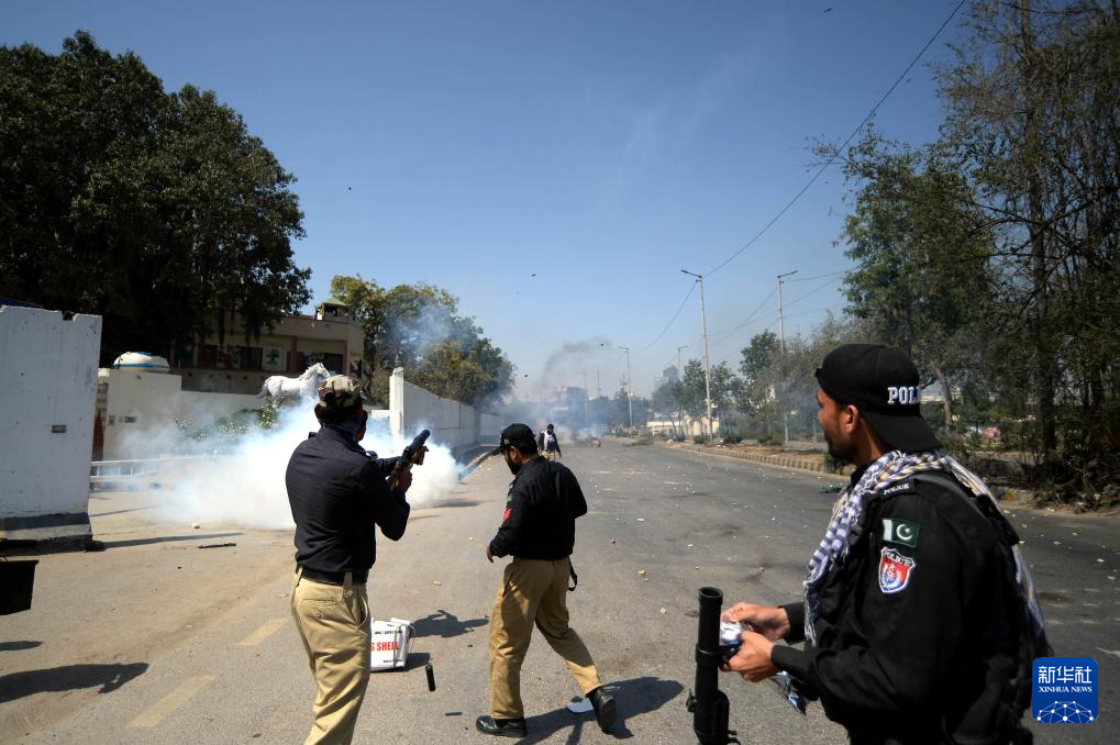 3月1日,在巴基斯坦南部城市卡拉奇的美國駐卡拉奇領(lǐng)事館附近,警察向抗議人群發(fā)射催淚瓦斯。