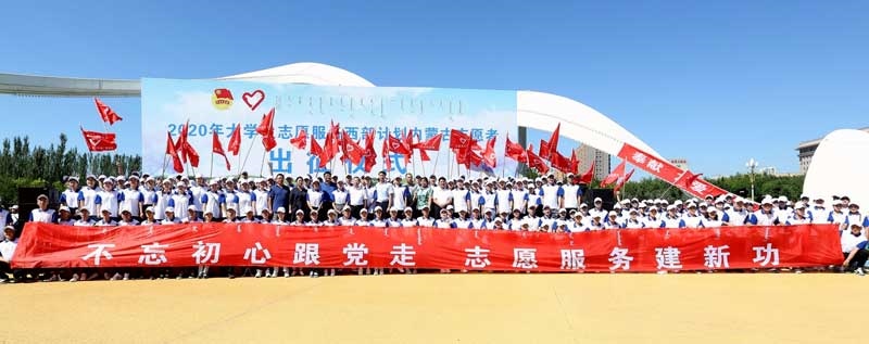 7月29日,2020年內(nèi)蒙古大學生志愿服務西部計劃志愿者出征儀式在呼和浩特舉行,來自區(qū)內(nèi)外高校的部分西部計劃志愿者代表和旗縣項目辦負責人參加。