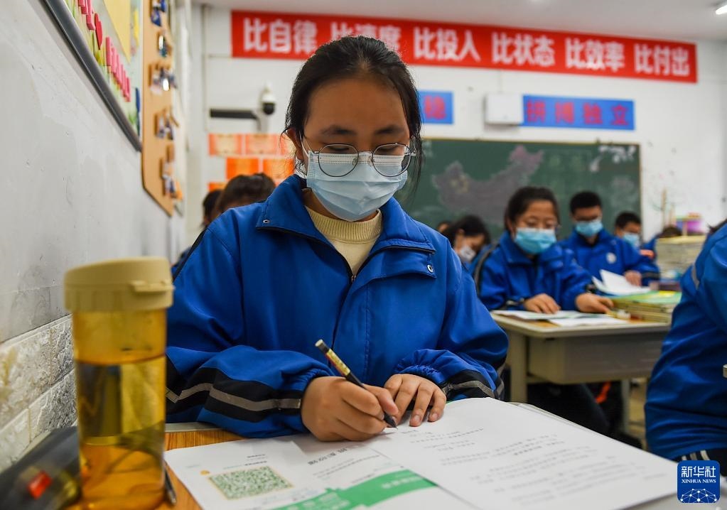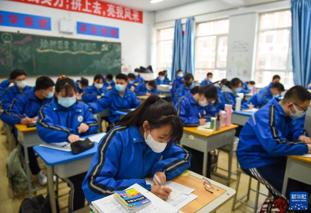 4月1日,呼和浩特市鐵路第二中學高三年級學生在教室里上課。