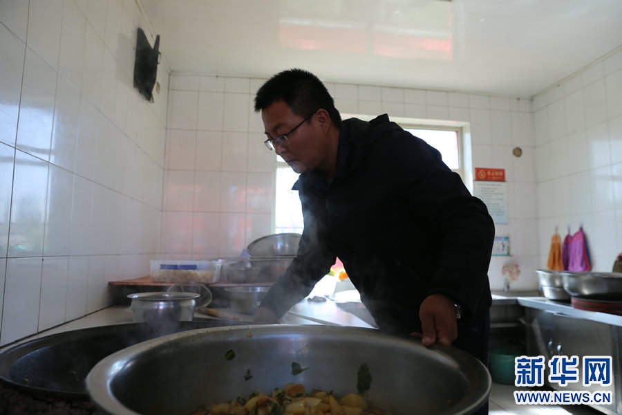 張慧聰?shù)囊惶鞆牧璩?點(diǎn)開始,喂豬、燒鍋爐、摘菜、盯食材、上課、查宿舍,豬一天要喂三次、鍋爐也要頻繁關(guān)注、三餐食材一頓也不能落、四個(gè)年級每班每天都要上課、每隔一段時(shí)間還得清理旱廁……這里沒有一間屬于他的辦公室,但這里卻處處是他的“辦公室”。新華網(wǎng) 李倩攝