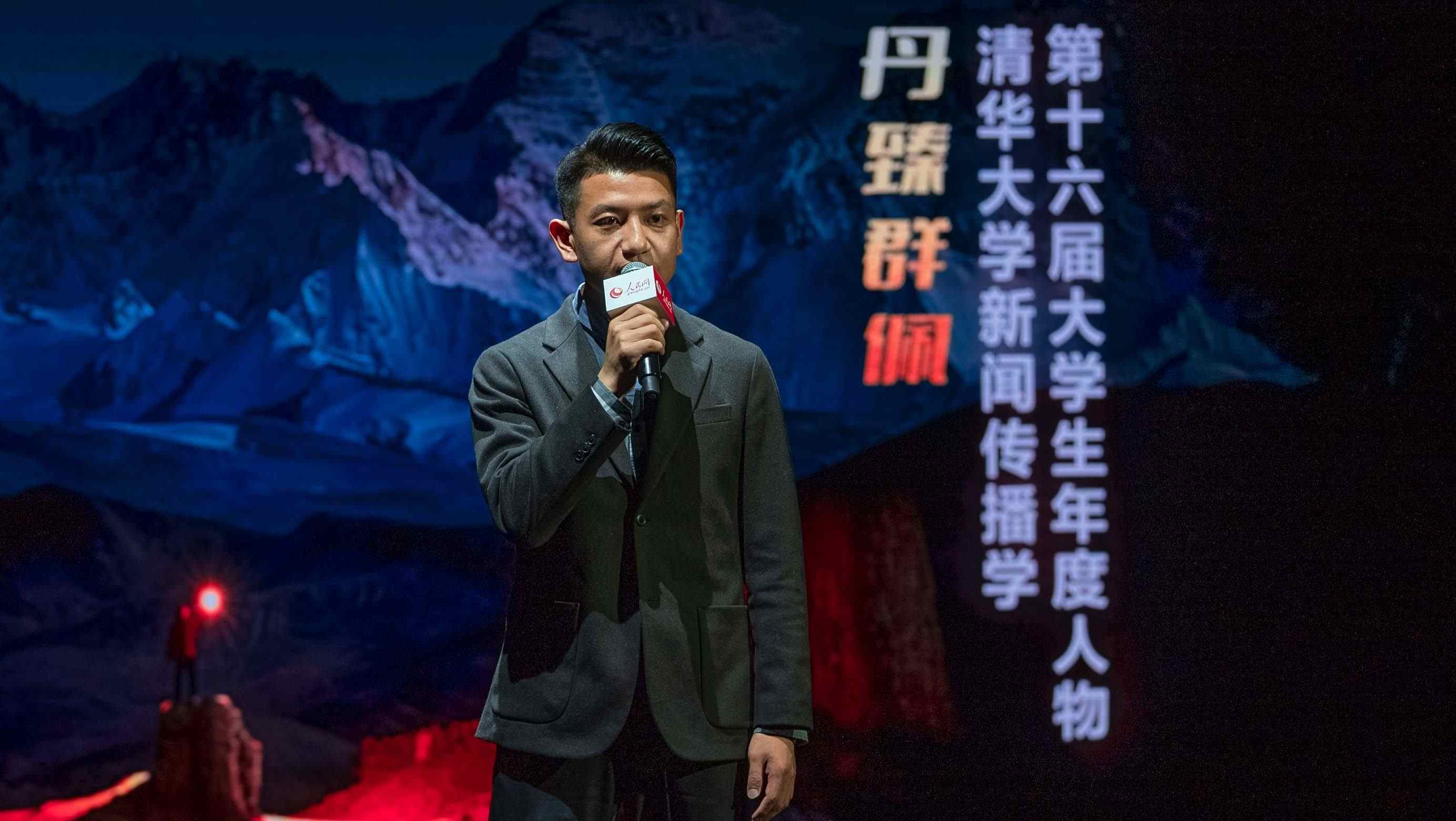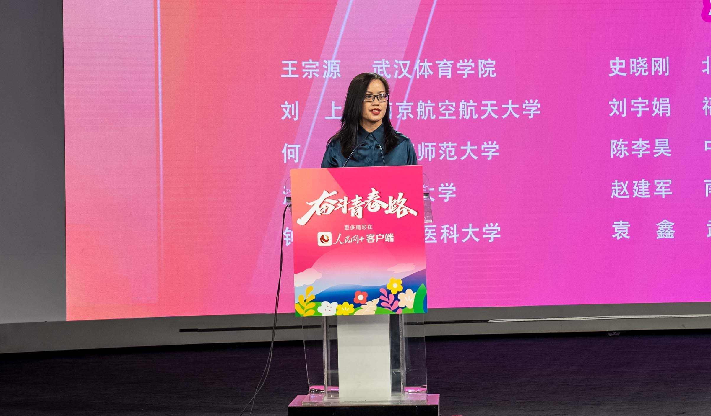 人民網(wǎng)黨委委員、副總裁潘?。ㄓ乙唬榈谑邔谩按髮W(xué)生年度人物”獲獎學(xué)生頒獎。實(shí)習(xí)生韓華良 攝