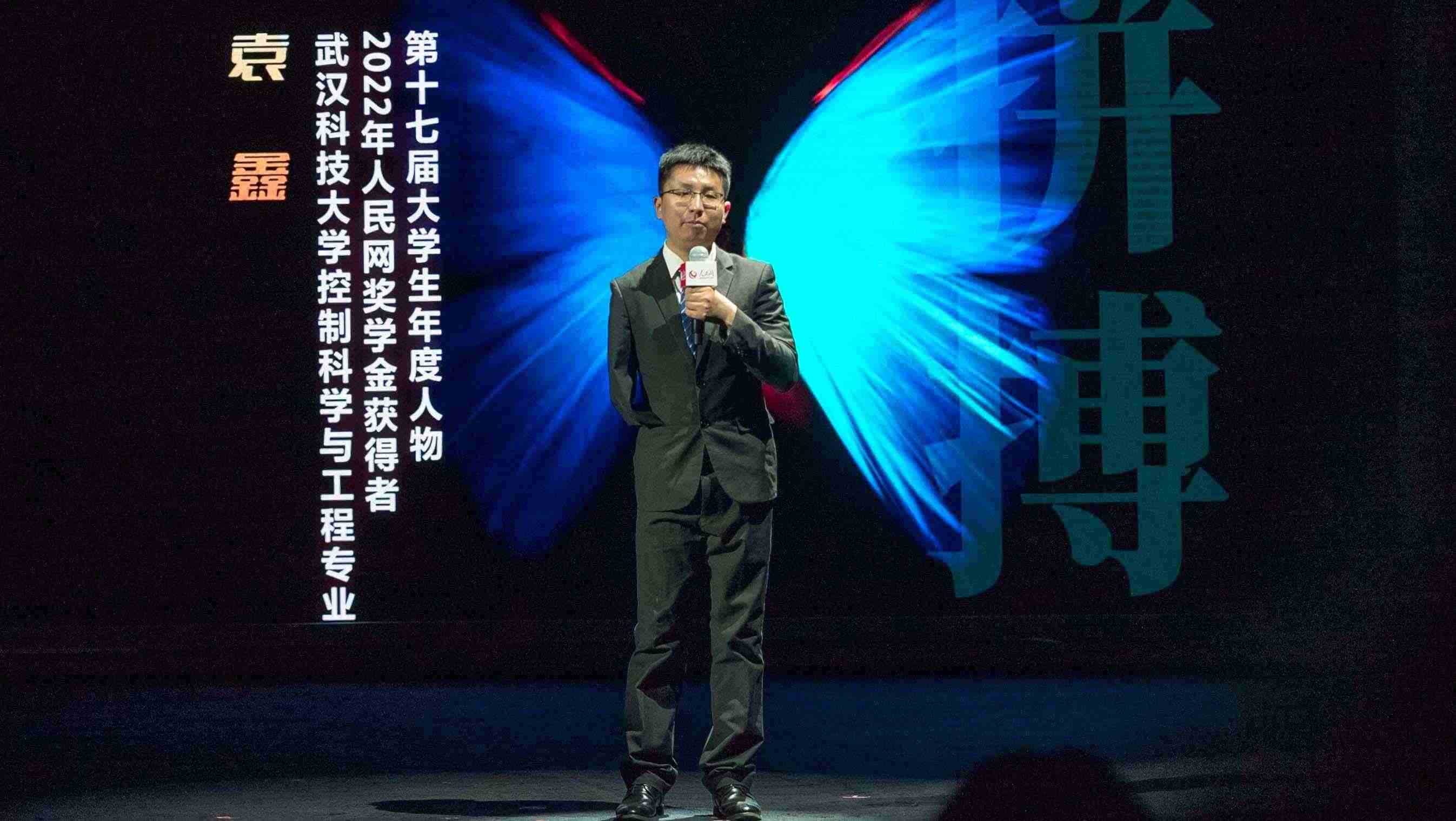 第十七屆大學(xué)生年度人物、2022年度人民網(wǎng)獎學(xué)金一等獎獲得者武漢科技大學(xué)控制科學(xué)與工程專業(yè)博士生袁鑫分享自己的故事。實(shí)習(xí)生韓華良 攝