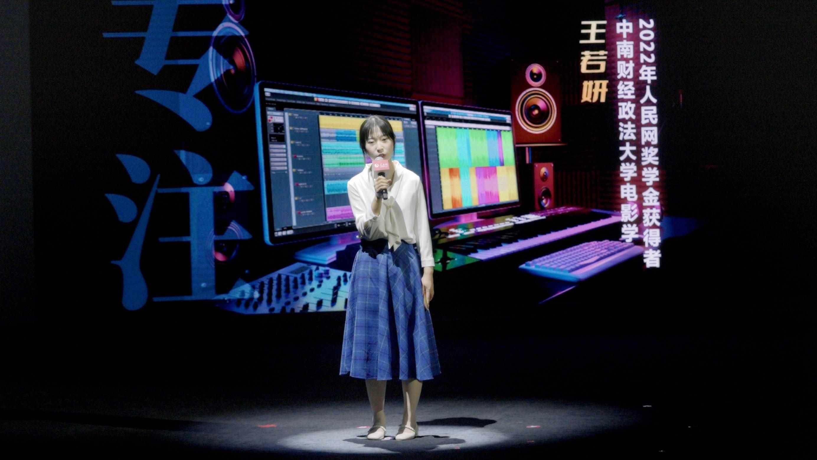 2022年人民網(wǎng)獎學(xué)金獲得者、中南財(cái)經(jīng)政法大學(xué)電影學(xué)專業(yè)學(xué)生王若妍分享自己的故事。實(shí)習(xí)生韓華良 攝