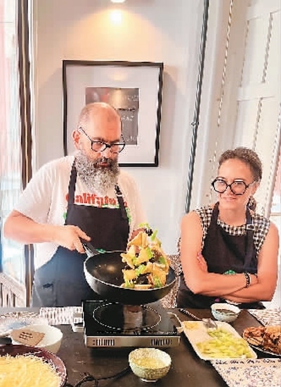 米蓋爾選修的是中華廚藝課,不僅自己學(xué)習(xí),還把太太拉來(lái)一起學(xué)做中國(guó)菜?!笆フQ晚宴全家聚會(huì)時(shí),我們做了幾道中國(guó)菜,把全家人驚艷到了?!泵咨w爾說(shuō)。