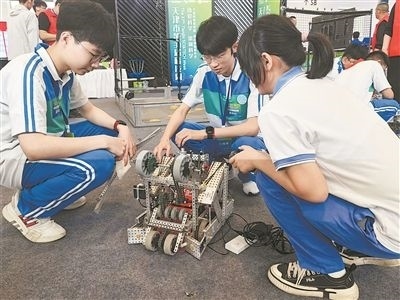 中學生在組裝機器人準備比賽。記者 陳曦攝