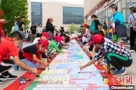 “六一”兒童節(jié)系列活動(dòng)期間,天津開(kāi)展少年兒童百米長(zhǎng)卷繪制活動(dòng)。王在御 攝