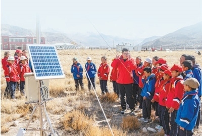 在中國科學(xué)院珠穆朗瑪大氣與環(huán)境綜合觀測(cè)研究站,西藏日喀則市定日縣扎西宗鄉(xiāng)完全小學(xué)學(xué)生近距離感受科學(xué)觀測(cè),在重點(diǎn)實(shí)驗(yàn)室聽了一堂生動(dòng)的科學(xué)課。