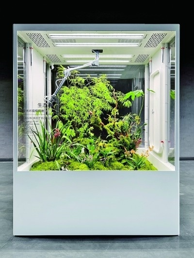 展廳一側(cè),三個(gè)立方體環(huán)境模擬艙并排放置,分別在近7立方米的空間內(nèi)模擬了雨林、海島、沙漠三種生態(tài)環(huán)境,引來(lái)許多觀眾圍觀?!霸诟邩橇至⒌亩际?,很多人都向往擁有一方屬于自己的自然天地。為人們?cè)谑覂?nèi)打造一片‘原始森林’便成了我們的使命?!逼放苿?chuàng)始人李軍介紹,設(shè)計(jì)過(guò)程中,團(tuán)隊(duì)遇到的一大的難點(diǎn)就是在保證室內(nèi)環(huán)境舒適度的同時(shí),讓各類(lèi)植物健康生長(zhǎng)?!巴ㄟ^(guò)設(shè)計(jì)師的努力,我們首次將人造太陽(yáng)光源、溫濕度控制、空氣流通、智能微噴等系統(tǒng)整合于室內(nèi)種植模擬環(huán)境中,實(shí)現(xiàn)了室內(nèi)種植智能化、自動(dòng)化、現(xiàn)代化。”李軍表示,做設(shè)計(jì)亦要遵循自然法則,“人與自然和諧共生”是團(tuán)隊(duì)始終不變的設(shè)計(jì)宗旨。