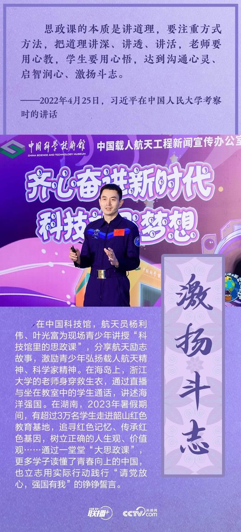 如何辦好新時(shí)代思政課?總書記有明確部署,全國各地也進(jìn)行了頗多有益探索。在2023年“把青春華章寫在祖國大地上”網(wǎng)絡(luò)主題宣傳和互動(dòng)引導(dǎo)活動(dòng)舉辦之際,央視網(wǎng)《聯(lián)播+》與您一同走進(jìn)豐富多彩的思政課堂。