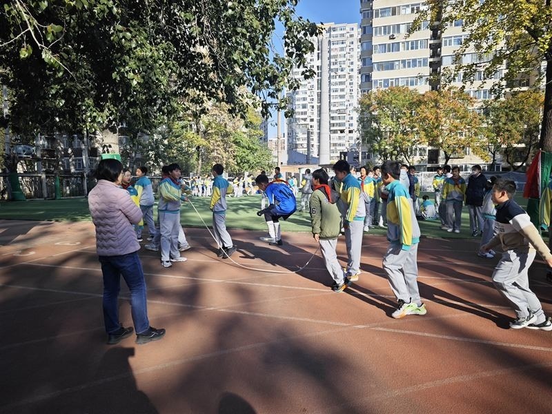 為了引導(dǎo)孩子們課間走出教室,北醫(yī)附小根據(jù)季節(jié)設(shè)計(jì)大型集體項(xiàng)目,比如秋季開(kāi)展的跳長(zhǎng)繩,老師們也參與進(jìn)來(lái)?yè)u繩,帶動(dòng)更多孩子參加體育鍛煉?!白寣W(xué)生在課間得到充分休息、活動(dòng),才能保證學(xué)生的課堂狀態(tài),從而促進(jìn)課堂教育教學(xué)質(zhì)量提升?!碧飮?guó)英表示。