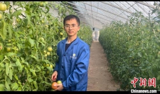 大多數時間,這位穿著黑色羽絨服的“95后”博士會與師弟李浩杰待在滿眼綠色的大棚內,觀察枝頭上的番茄,偶爾也會摘下來嘗嘗果實是否可口。