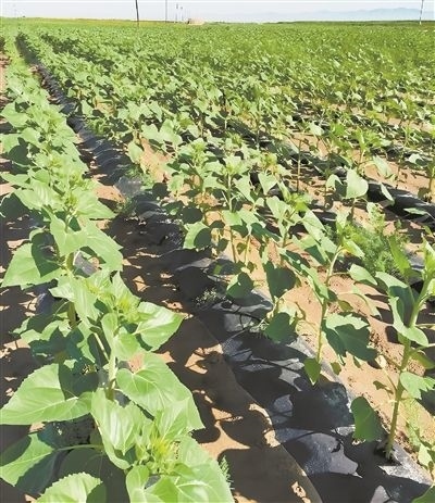 土壤經中國農業(yè)科學院鹽堿地改良創(chuàng)新團隊改良后,種植的食葵長勢良好。受訪者供圖