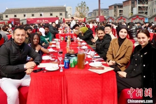 外國(guó)留學(xué)生體驗(yàn)“路橋區(qū)首屆‘辣呵呵’千人宴”。阮雅妮 攝
