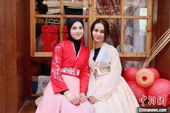 外國(guó)留學(xué)生體驗(yàn)漢服。阮雅妮 攝