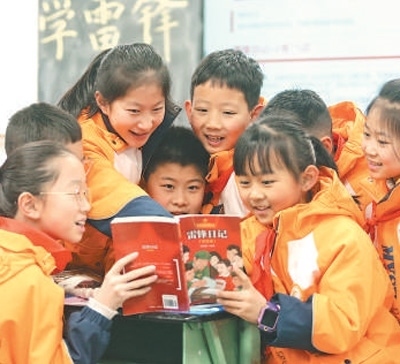 | 3月4日,四川省綿陽市,涪城區(qū)小學生閱讀《雷鋒日記》。宋豪新 陳冬冬攝影報道 |