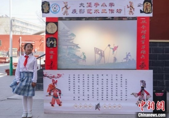 圖為在西寧市大堡子小學,學生表演“蹴鞠”皮影戲。馬銘言 攝