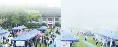 復(fù)旦大學(xué)開展生涯服務(wù)集市活動,促進(jìn)人才供需對接。岑丹峰攝