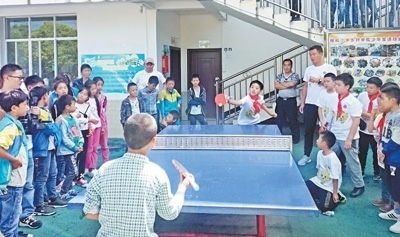 | 塘房小學(xué)學(xué)生和外校學(xué)生進行乒乓球友誼賽。 |