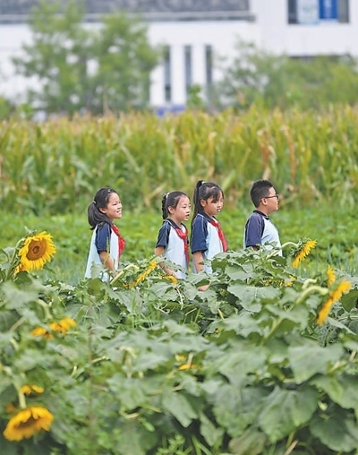 9月1日,天津師范大學(xué)第三附屬小學(xué)組織學(xué)生在校勞動(dòng)種植基地,開展認(rèn)識(shí)農(nóng)作物的開學(xué)第一課。新華社記者 李 然攝