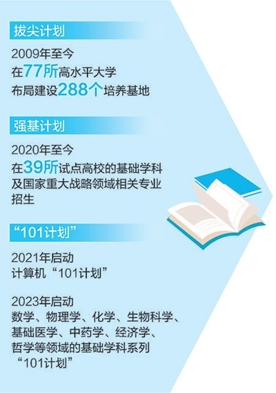 高東鋒:教育部依托高水平大學(xué)累計(jì)建設(shè)288個(gè)基礎(chǔ)學(xué)科拔尖學(xué)生培養(yǎng)基地,強(qiáng)化有組織拔尖創(chuàng)新人才培養(yǎng),在計(jì)算機(jī)科學(xué)、數(shù)學(xué)、基礎(chǔ)醫(yī)學(xué)、經(jīng)濟(jì)學(xué)等9個(gè)領(lǐng)域?qū)嵤?01計(jì)劃”,建設(shè)核心課程、教材、師資團(tuán)隊(duì)和實(shí)踐項(xiàng)目?;A(chǔ)學(xué)科拔尖學(xué)生培養(yǎng)計(jì)劃實(shí)施高校建設(shè)了一批榮譽(yù)學(xué)院、書院等“育人試驗(yàn)區(qū)”,逐漸形成了“選拔設(shè)通道、培養(yǎng)留空間、評價(jià)長周期、協(xié)同聚合力”的有效模式。