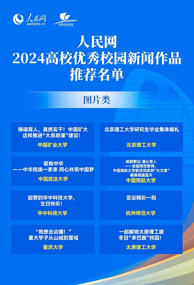 據(jù)了解,本次推薦活動(dòng)共征集到600余篇作品。《楚健春:我何其幸運(yùn),能夠點(diǎn)亮更多學(xué)生眼中的光》等16篇作品入選文字類(lèi)優(yōu)秀作品;《鑄魂育人,真抓實(shí)干!中國(guó)礦大這樣推進(jìn)“大思政課”建設(shè)!》等8篇作品入選圖片類(lèi)優(yōu)秀作品;《清華的約定》等11篇作品入選紀(jì)錄片類(lèi)優(yōu)秀作品;《刷屏!東大校友黃雪梅,“跑”出奧運(yùn)第一!》等15篇作品入選融合報(bào)道類(lèi)優(yōu)秀作品。