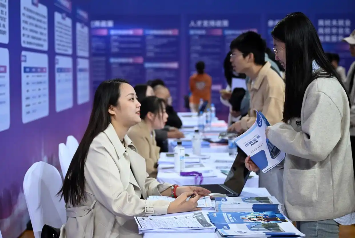 3月20日,環(huán)渤海城市聯(lián)合招聘高校畢業(yè)生春季專場活動(dòng)在天津職業(yè)技術(shù)師范大學(xué)啟動(dòng),來自環(huán)渤海地區(qū)400多家企業(yè)提供崗位1.1萬個(gè)?;顒?dòng)現(xiàn)場還設(shè)立就業(yè)服務(wù)臺(tái),為學(xué)生提供指導(dǎo)。圖為當(dāng)日,求職學(xué)生(右)和招聘方代表在招聘會(huì)現(xiàn)場交談。新華社記者 趙子碩攝
