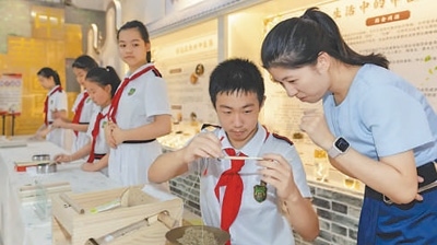走進廣東省廣州市越秀區(qū)朝天小學的校園,耳邊傳來清脆的童聲,不時聞到中藥材的絲絲清香?!袄蠋焸儊砗纫槐├姘俸巷嫲桑玫氖仟毤遗浞剑鹛鸬?,好好飲?!睅酌麑W生迎面走來,熱情地分享中醫(yī)藥課程的實踐成果。