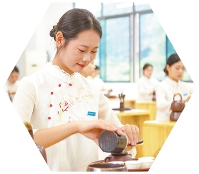 福建武夷山市在職業(yè)學校開設茶藝、茶葉加工等專業(yè),為當?shù)夭璁a(chǎn)業(yè)發(fā)展培養(yǎng)技能人才。