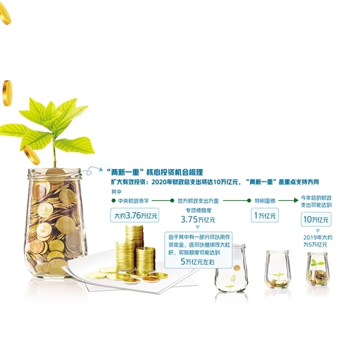 為重點支持既促消費惠民生又調(diào)結(jié)構(gòu)增后勁的“兩新一重”建設,根據(jù)《政府工作報告》,今年特別安排地方政府專項債券3.75萬億元,比2019年有所增加;另有抗疫特別國債1萬億元,資金用途共涉及6個領域,其中有部分也指向“兩新一重”建設領域。