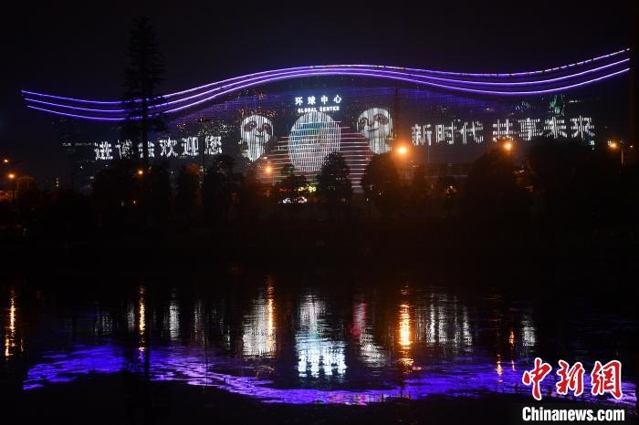 成都環(huán)球中心被第三屆中國(guó)國(guó)際進(jìn)口博覽會(huì)標(biāo)語“點(diǎn)亮”?!埨恕z