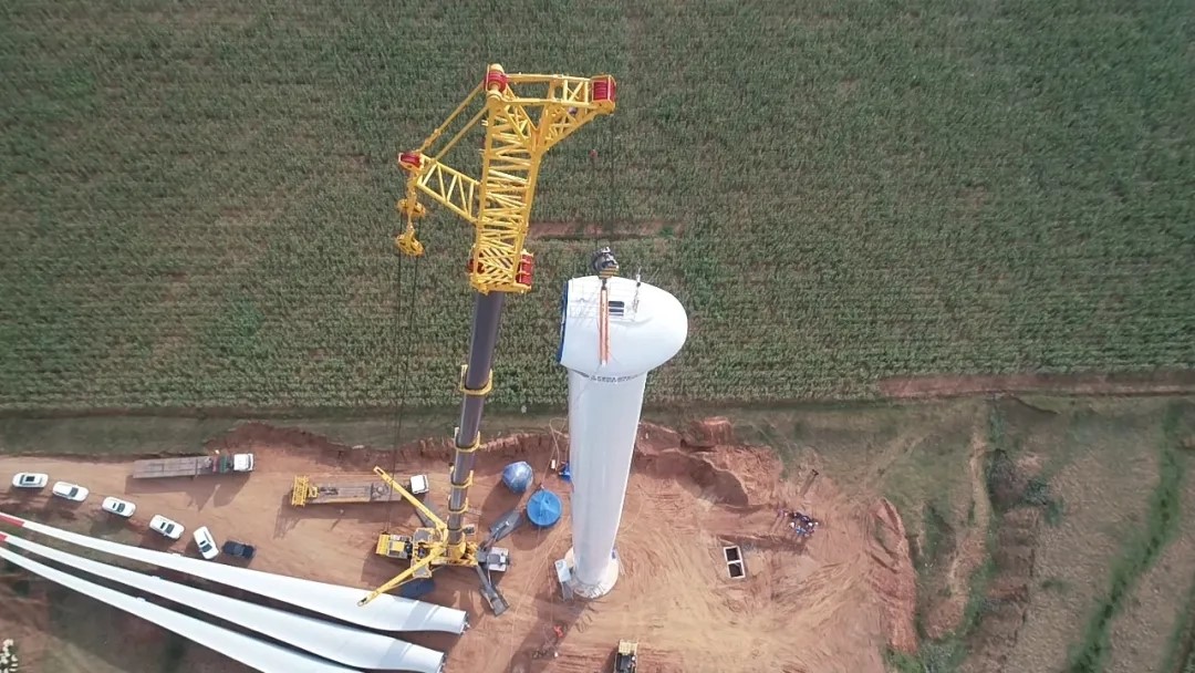 9月8日,第一臺風(fēng)機(jī)整體吊裝成功