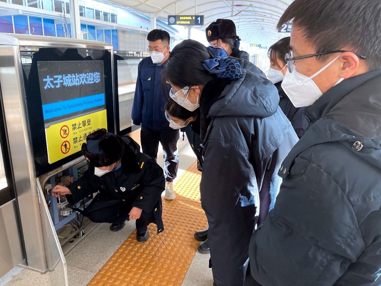 張家口太子城站進行設施檢查維護。北京局供圖