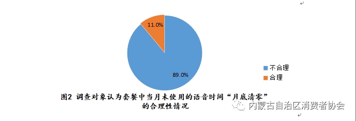1.運營商提供的現(xiàn)有套餐及資費政策不合理。30.3%的調(diào)查對象認為套餐有額外增值業(yè)務(wù)產(chǎn)生,28.3%的調(diào)查對象認為套餐整體資費超出所需范圍,89%的調(diào)查對象表示套餐中當(dāng)月未使用的語音時間“月底清零”不合理,所有調(diào)查對象均表示三大通訊運營商沒有提供無固定月租收費標(biāo)準(zhǔn)。