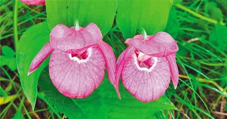 這3種杓蘭屬于內(nèi)蒙古大興安嶺珍稀的植物資源,零星分布在林下、林緣、林間草地上,或三五株,或十余株,每種杓蘭都各具特色。大花杓蘭呈紫紅色,花大,深囊狀的唇瓣如雞蛋般大??;紫點(diǎn)杓蘭花為白色,上面有淡紫色斑點(diǎn);黃囊杓蘭花色為淺黃色,唇瓣為深囊狀近橄欖型。由于杓蘭花朵形狀特別,非常惹人喜愛(ài),許多人慕名來(lái)打卡拍照。