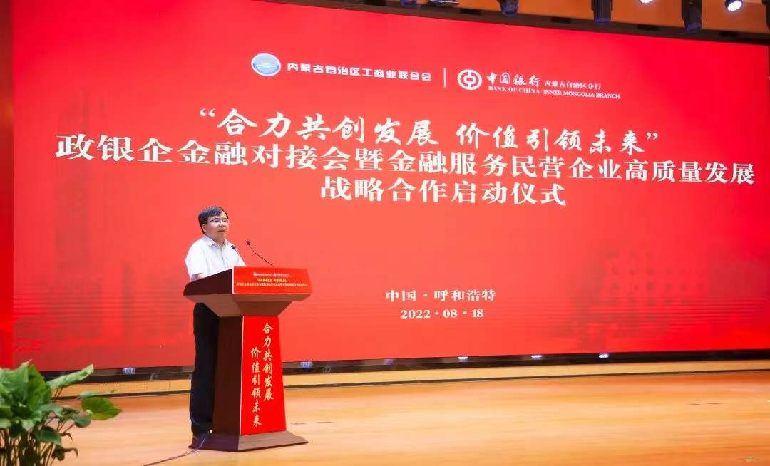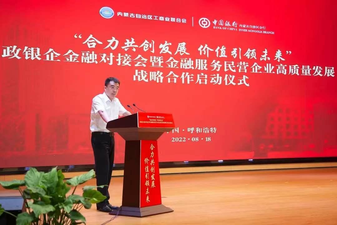 胡文勇在啟動儀式上表示,近年來,自治區(qū)工商聯(lián)積極踐行黨和政府聯(lián)系非公有制經(jīng)濟人士的橋梁紐帶職能,充分發(fā)揮統(tǒng)戰(zhàn)性、經(jīng)濟性、民間性綜合優(yōu)勢,緊緊圍繞自治區(qū)黨委、政府中心工作,團結(jié)和帶領(lǐng)廣大非公有制經(jīng)濟人士,與時俱進,大膽創(chuàng)新,努力實踐,不斷提高工商聯(lián)工作水平,引導(dǎo)民營企業(yè)堅定不移走以生態(tài)優(yōu)先、綠色發(fā)展為導(dǎo)向的高質(zhì)量發(fā)展新路子,推動優(yōu)化營商環(huán)境,促進我區(qū)非公有制經(jīng)濟又好又快發(fā)展,為全面建設(shè)小康社會、構(gòu)建和諧社會作出重要貢獻。作為唯一一家持續(xù)經(jīng)營超過百年的國有大行,中國銀行秉承“融通世界、造福社會”的崇高使命,將自身發(fā)展與地方經(jīng)濟發(fā)展緊密相連,主動擔當服務(wù)支持民營企業(yè)發(fā)展壯大的金融重任。中國銀行內(nèi)蒙古分行將以此次簽約為契機,繼續(xù)深耕細作民營經(jīng)濟領(lǐng)域的融資服務(wù),在普惠金融、科技金融、綠色金融等領(lǐng)域加強金融支持,緩解小微企業(yè)“融資難、融資貴”問題,助企紓困,風雨同舟,為深化政銀企合作共贏發(fā)展貢獻新力量。