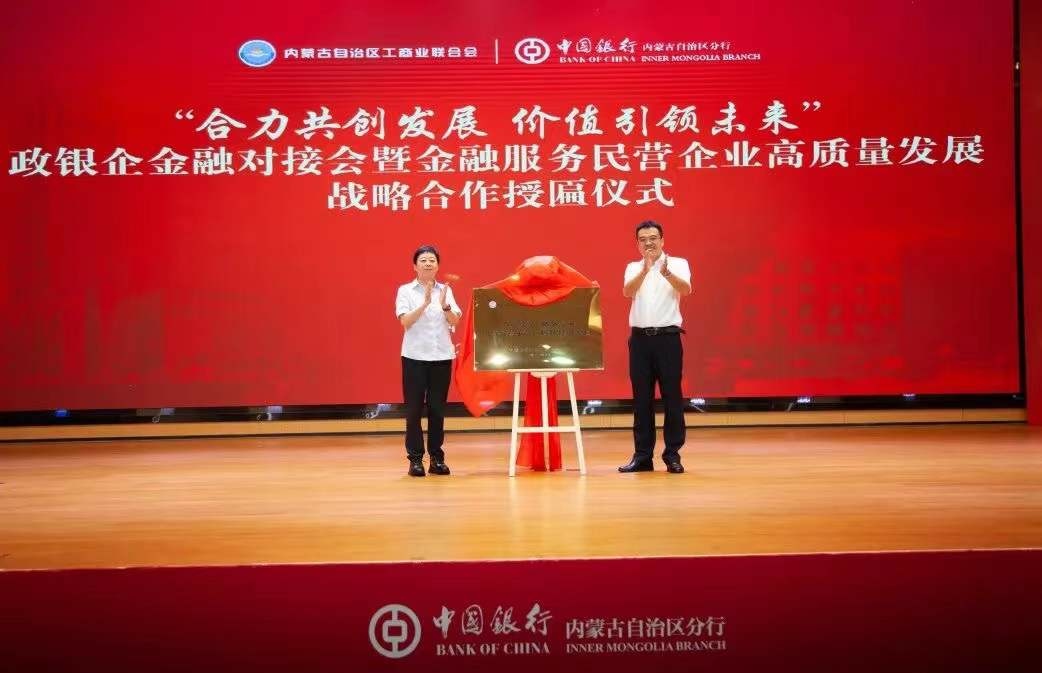 8月18日,中國銀行內(nèi)蒙古自治區(qū)分行與內(nèi)蒙古自治區(qū)工商業(yè)聯(lián)合會“合力共創(chuàng)發(fā)展 價值引領(lǐng)未來”政銀企金融對接會暨金融服務(wù)民營企業(yè)高質(zhì)量發(fā)展戰(zhàn)略合作啟動儀式在呼和浩特舉行。自治區(qū)政協(xié)副主席、工商業(yè)聯(lián)合會主席安潤生,自治區(qū)工商業(yè)聯(lián)合會提名副主席溫殿龍,中國銀行內(nèi)蒙古自治區(qū)分行黨委書記、行長胡文勇,中國銀行內(nèi)蒙古自治區(qū)分行黨委委員、副行長雲(yún)雯妍出席活動。自治區(qū)工商業(yè)聯(lián)合會相關(guān)部門以及行業(yè)協(xié)會、商會、企業(yè)代表,中國銀行內(nèi)蒙古自治區(qū)分行相關(guān)部門及直屬支行負責人參加活動。