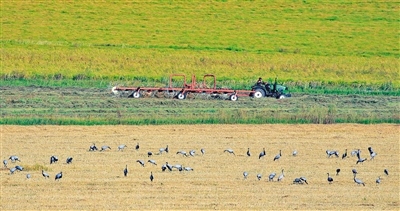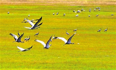 在這優(yōu)美畫卷中,蓑羽鶴就是額侖草原上的精靈,給草原平添了生命的活力。蓑羽鶴是鶴類中個體最小者,對生態(tài)環(huán)境質量要求很高。從之前的形單影只,到現(xiàn)在的成群結隊,蓑羽鶴對額侖草原的青睞,足以說明了額侖草原生態(tài)環(huán)境的保護成效。