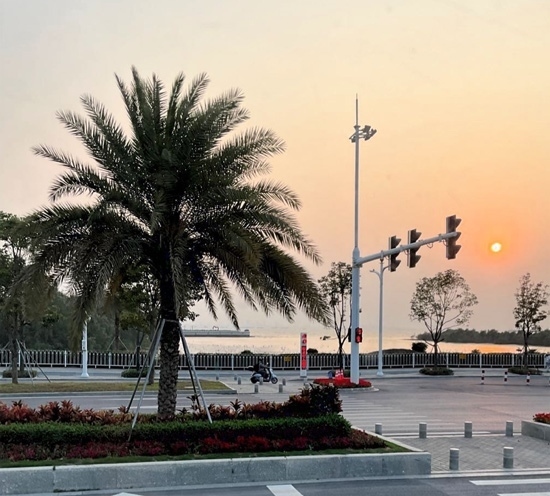 人民網(wǎng)東莞2月22日電 (記者趙雯 薛艷艷)濱海驛站坐落于廣東省東莞市濱海灣新區(qū),是東莞濱海長廊首個建成的重要節(jié)點,緊靠海岸線,南臨前海,隔海眺望南沙自貿(mào)區(qū)、中山翠亨新區(qū)。立于驛臺前,海風(fēng)習(xí)習(xí)拂來,海天一線,日落降臨,浮光躍金。濱海驛站周邊建有廣場平臺、自行車道、沿海步道和園林綠化。濱海灣新區(qū)未來規(guī)劃建設(shè)一條長約40余公里的濱海長廊,以“運動廊+人文鏈+活力岸”為建設(shè)目標(biāo),打造生態(tài)海堤,不僅為游客提供親水體驗,同時也為鳥類、兩棲類動物提供生境及遷徙通廊。